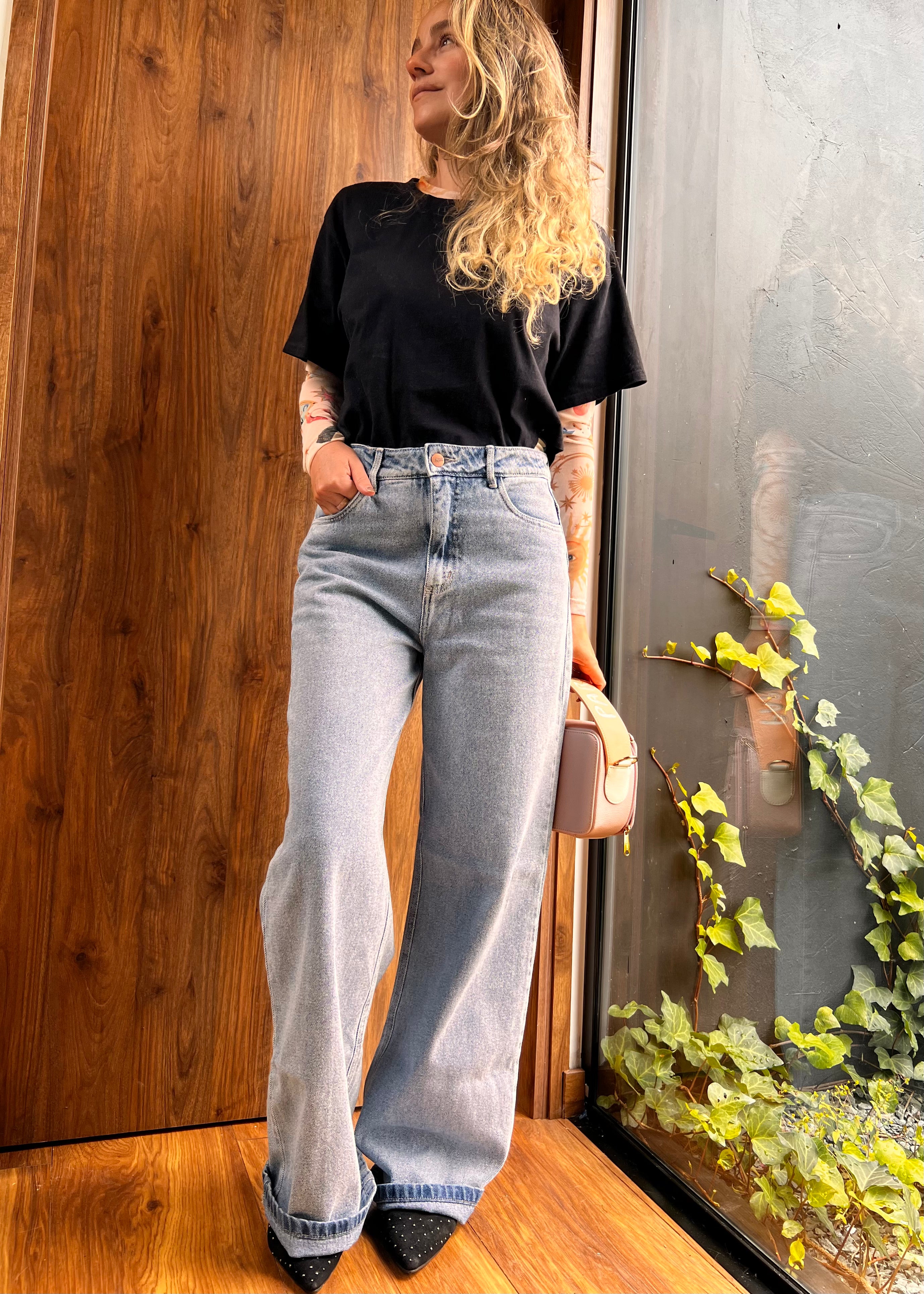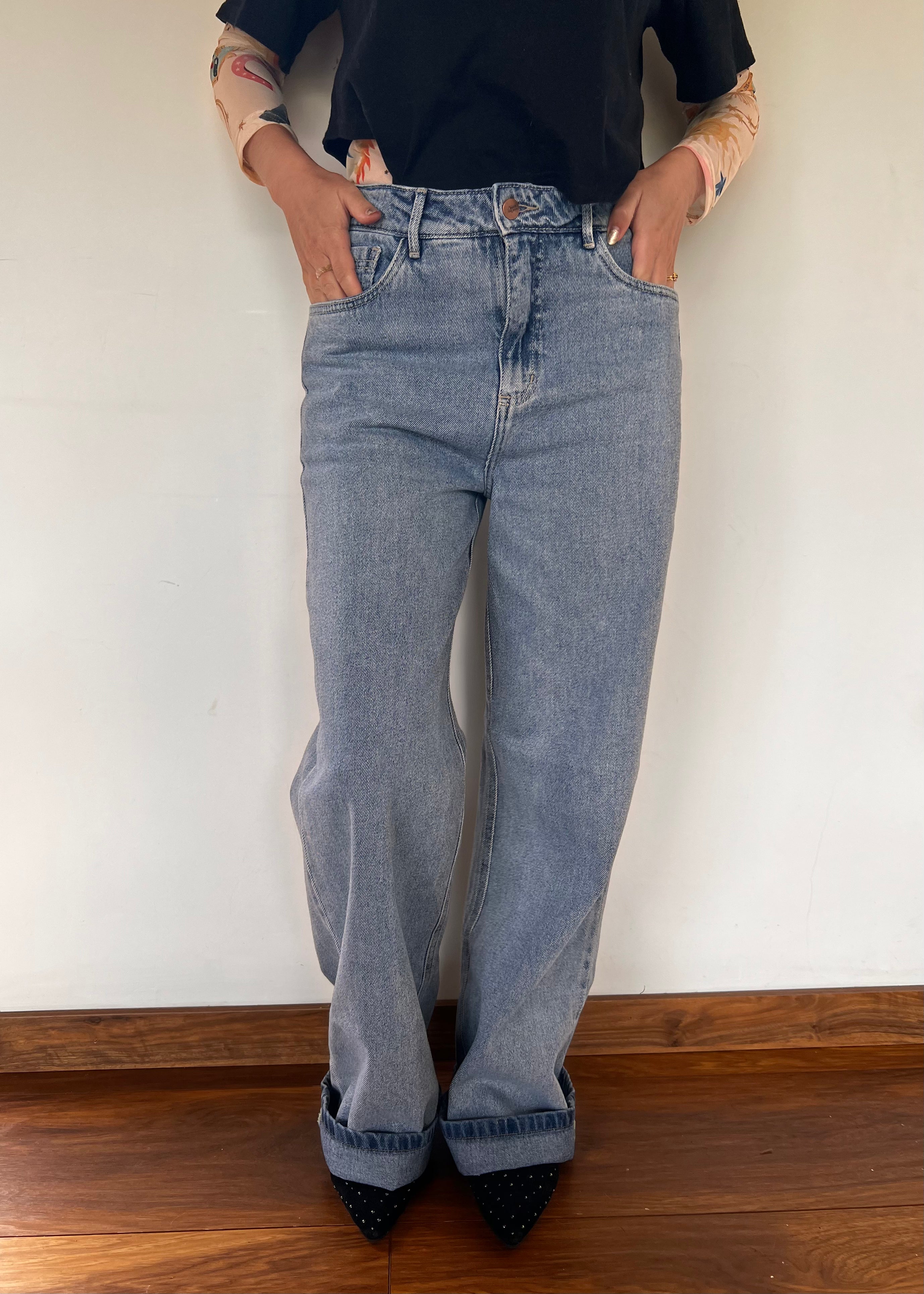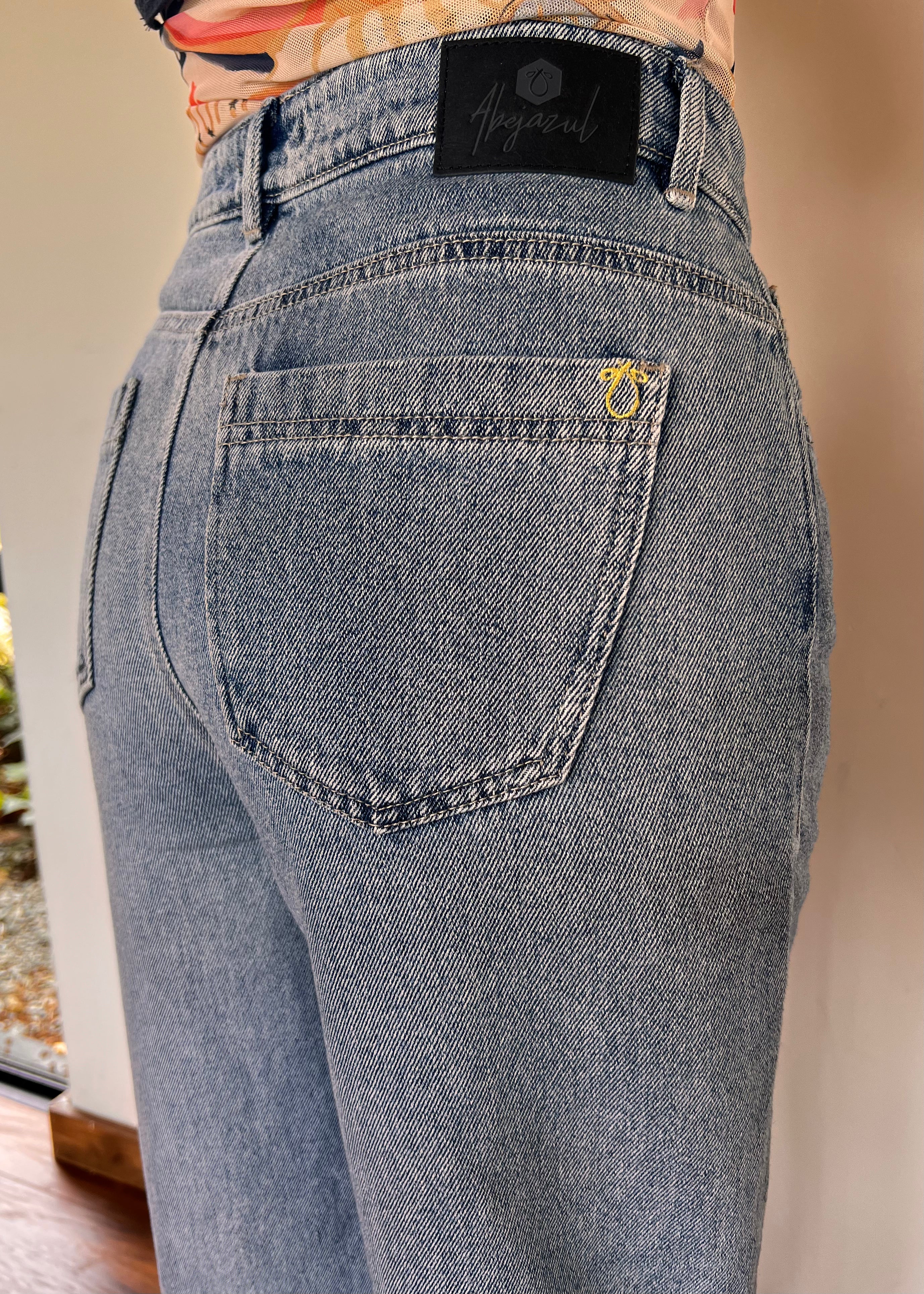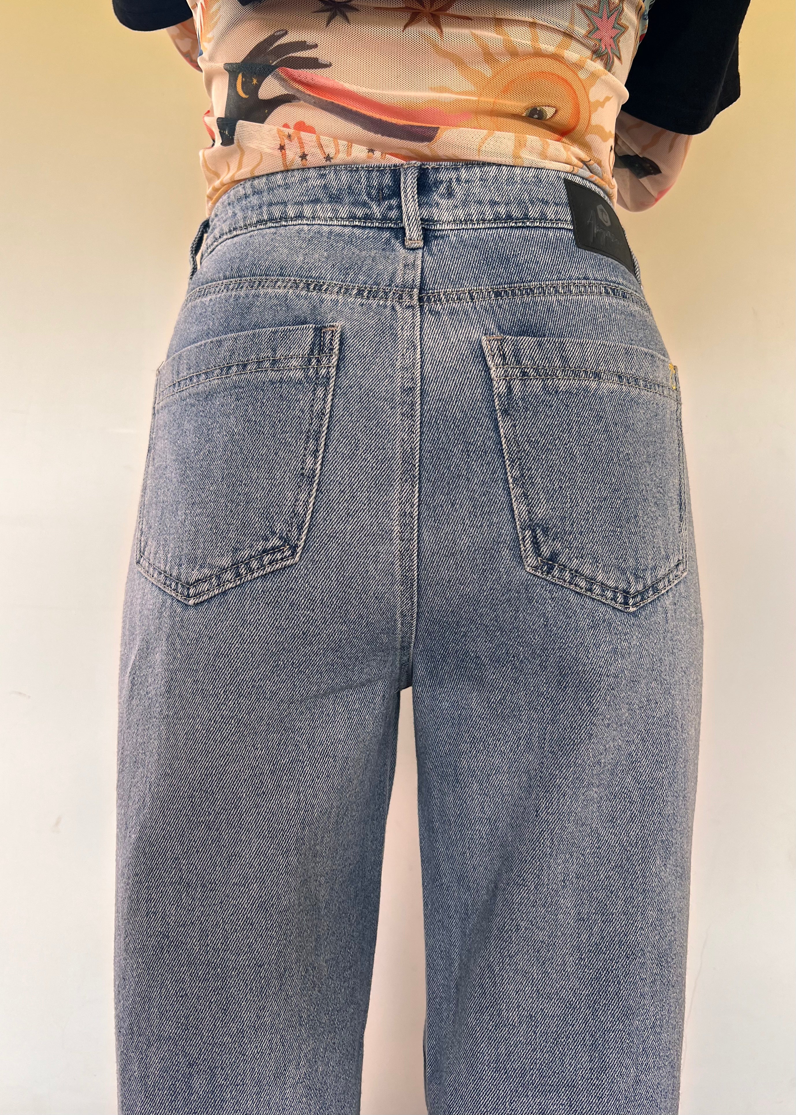 Jean en denim, silueta boyfriend, tiro alto y bota recta. Tiene bolsillos delanteros y posteriores, y bordado en bolsillo posterior.