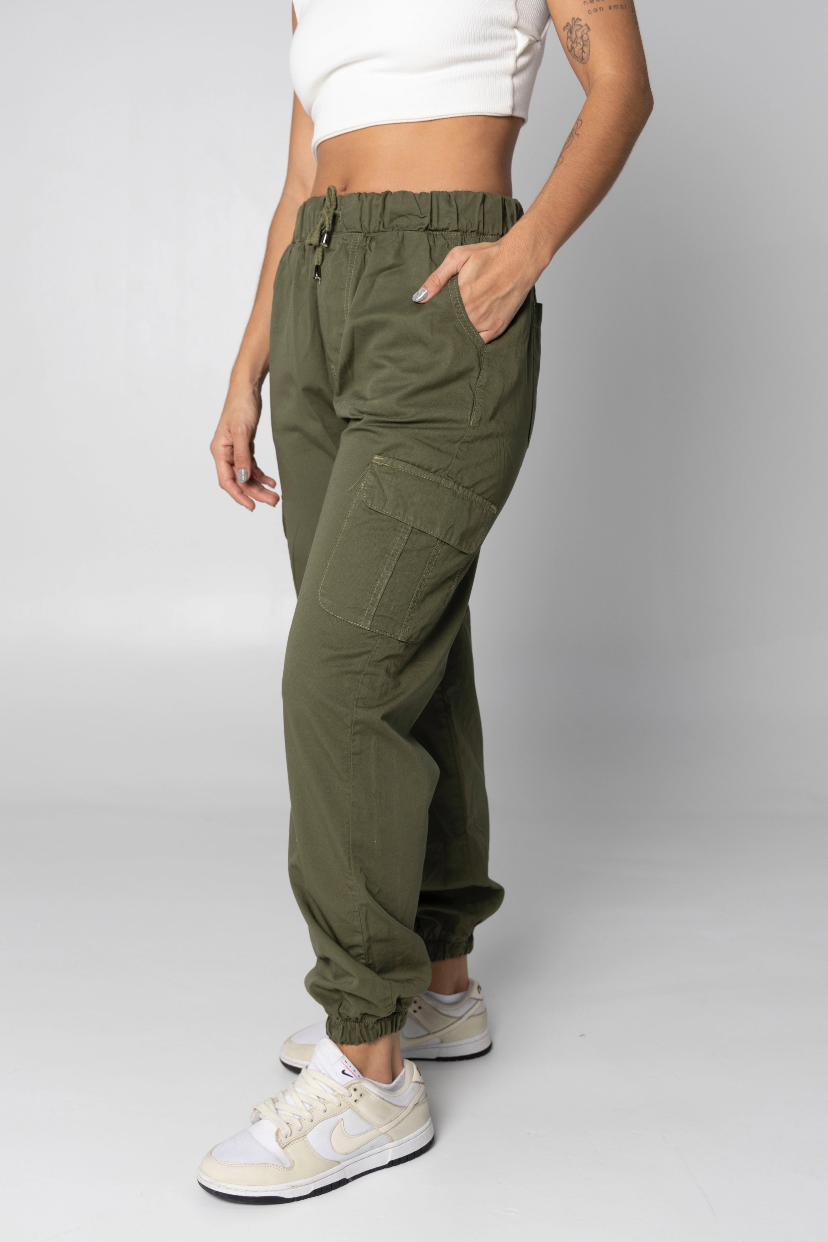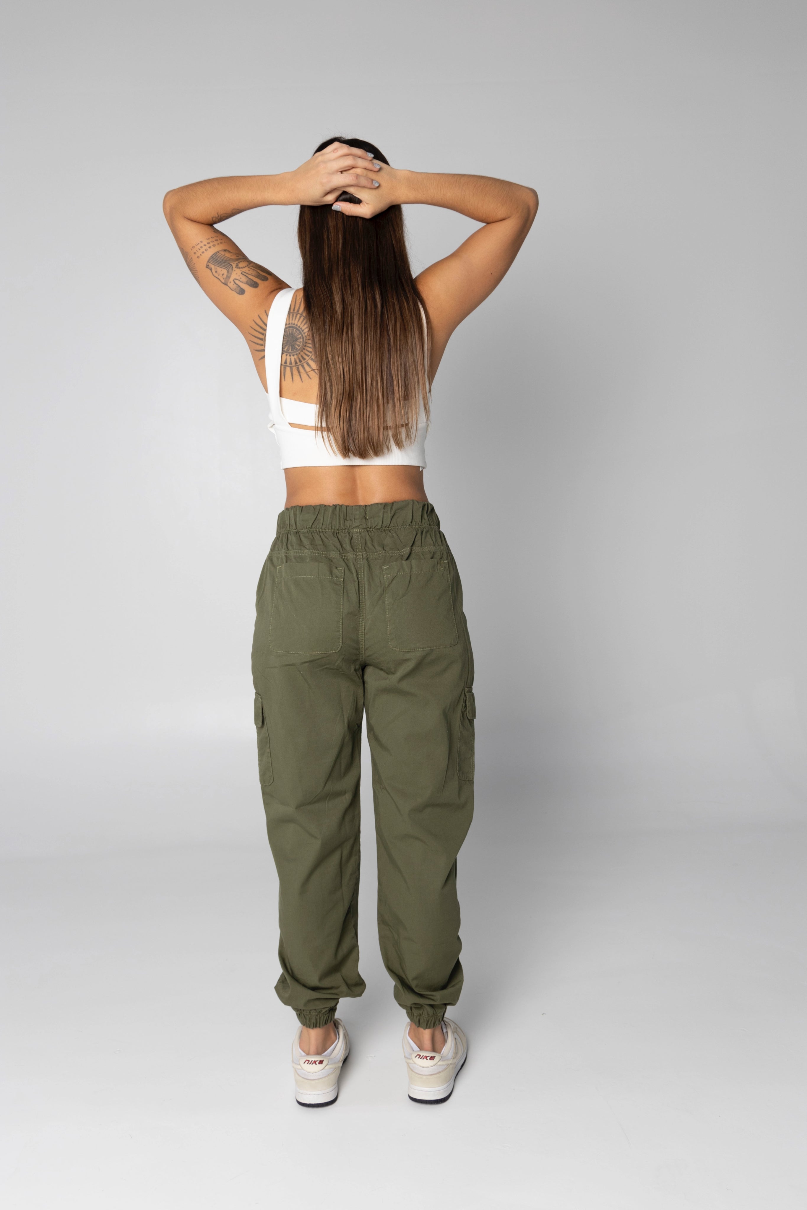 Pantalón tipo jogger, tiro alto, con un diseño amplio en la cadera y pierna que permiten el libre movimiento y comodidad. Se ajustan solo en la cintura y tobillo a través de elástico que se adapta a cada cuerpo de manera confortable.